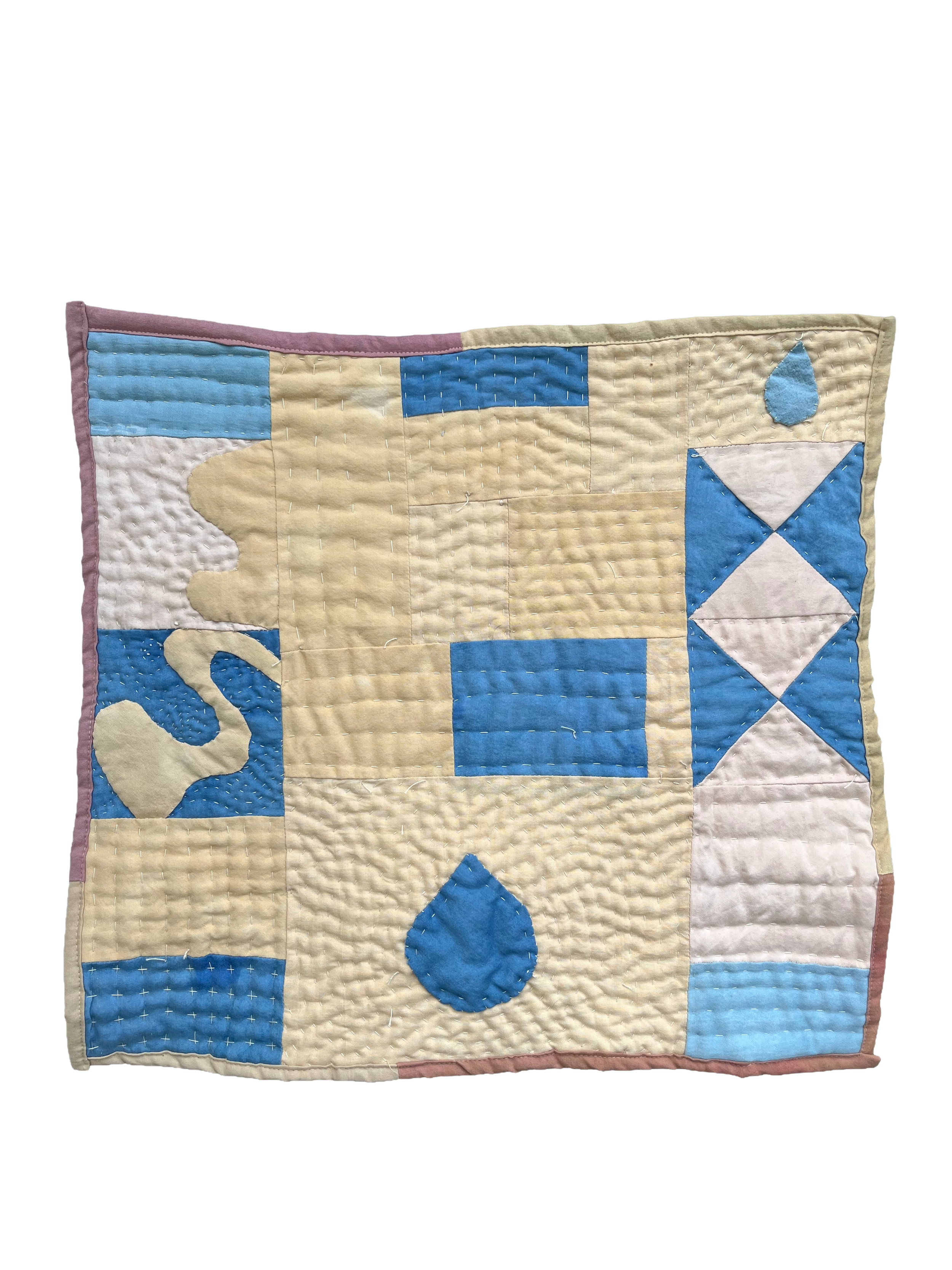 Machine-pieced and Hand-quilted with repurposed fabrics dyed with indigo, curly dock, cochineal We are made from and shaped by water, flowing through our bodies. It is cyclical and enduring and shared by all life. What changes when we treat water as creator rather than resource?