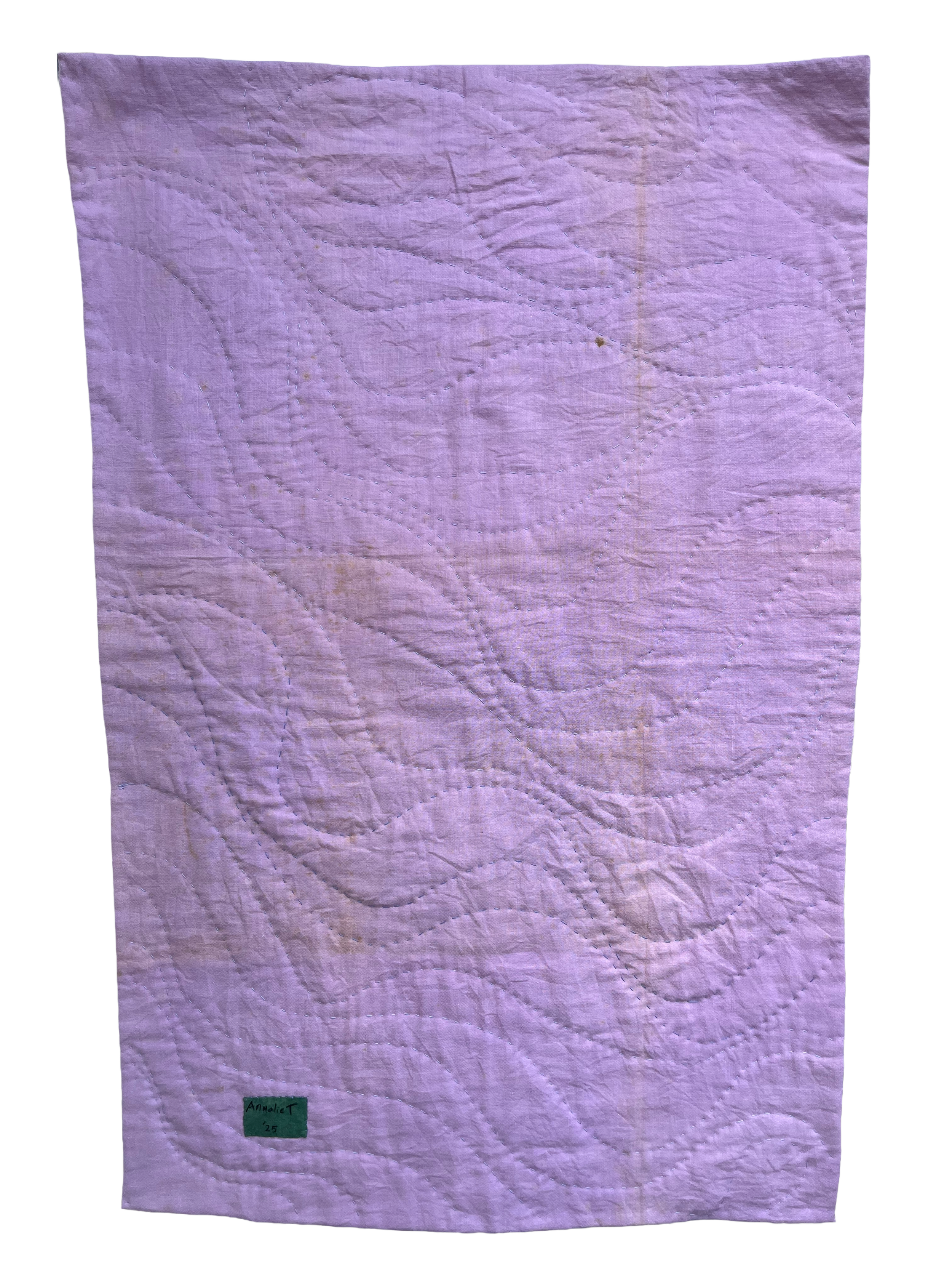 12x34” Machine-pieced and Hand-quilted with repurposed fabrics dyed with indigo, screen printed with indigo pigment